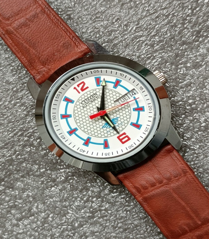 Citizen White Men’s Watch Automatic Vintage Japan Brown Strap 37MM