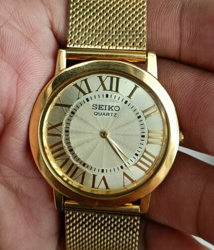 Seiko Quartz White Men’s Watch Vintage Japan Made Gold Chain 36MM
